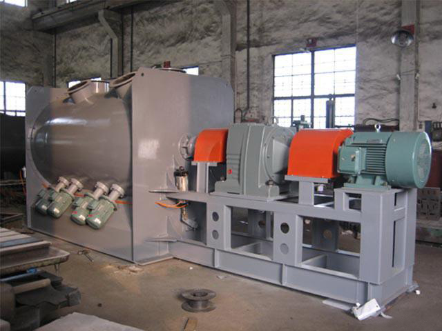 結(jié)團(tuán)性物料如纖維或受潮結(jié)團(tuán)、加液凝聚的粉料,通過(guò)在犁刀混合機(jī)內(nèi)安裝的高速飛刀,結(jié)合犁刀攪拌器攪拌物料時(shí)形成的對(duì)流循環(huán)作用,對(duì)結(jié)團(tuán)性物料進(jìn)行打散、分離。
