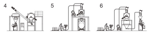 配置3:多級(jí)真空上料輸送,混合儲(chǔ)存后,再進(jìn)行包裝;